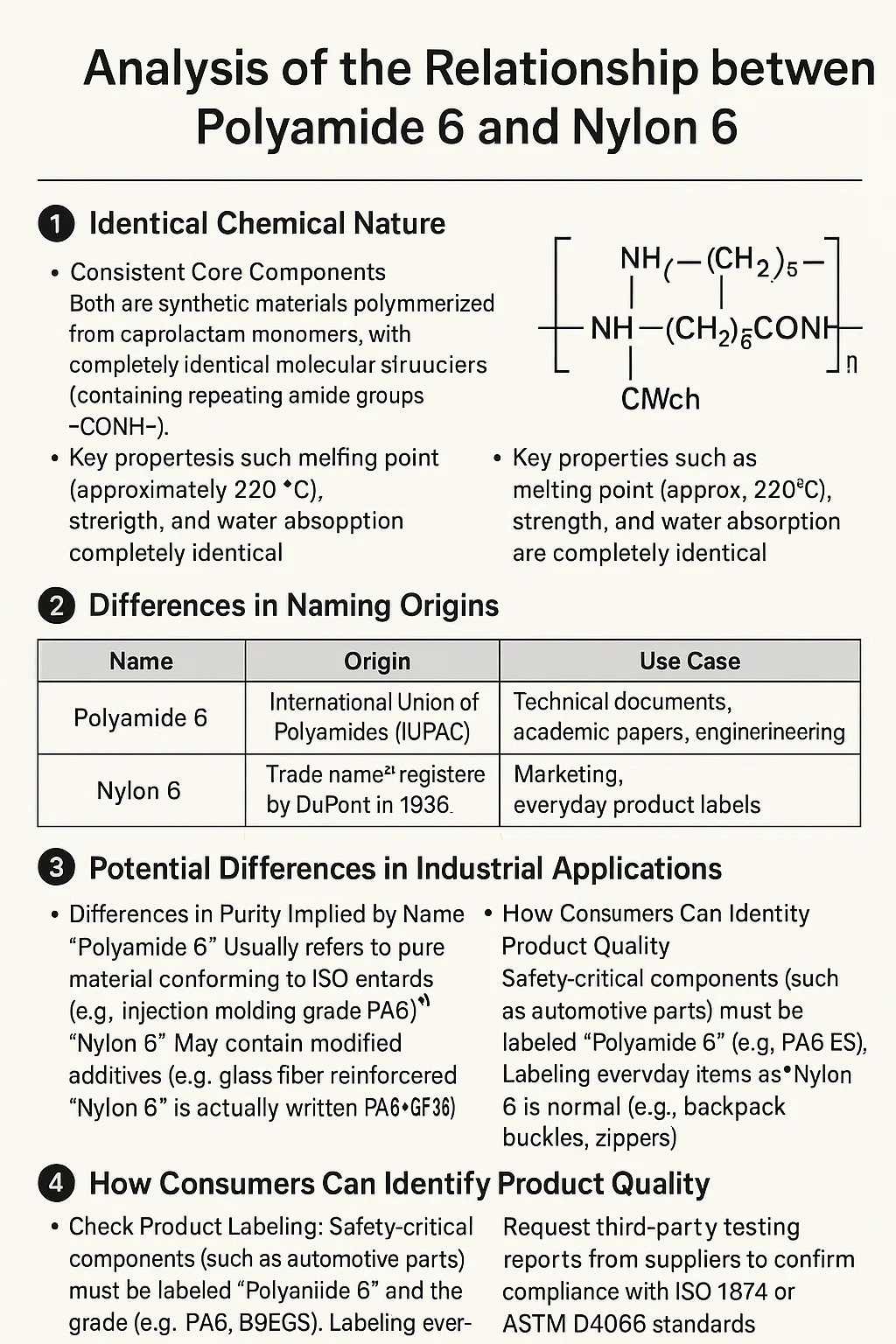 " Polyamidi 6 ": Viittaa yleensä puhtaaseen materiaaliin, joka täyttää ISO-standardit (esim. ruiskupuristuslaatu PA6)