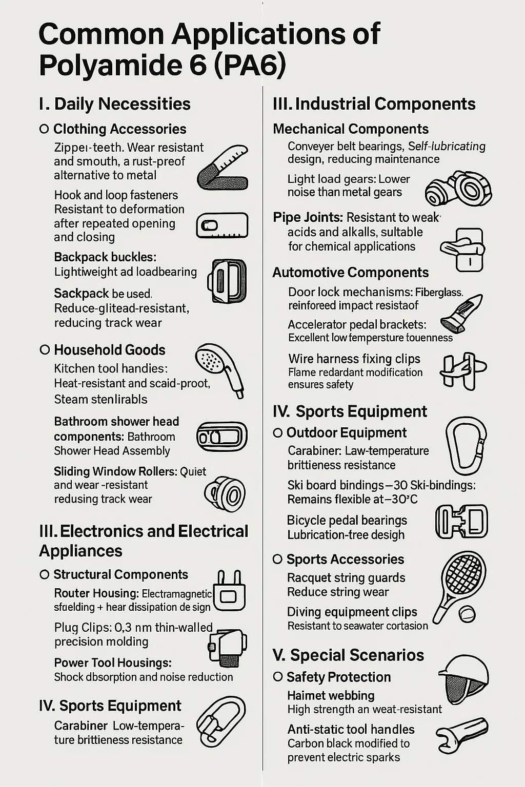 Seuraavassa on johdatus yleisiin sovelluksiin polyamidi 6 (PA6):
