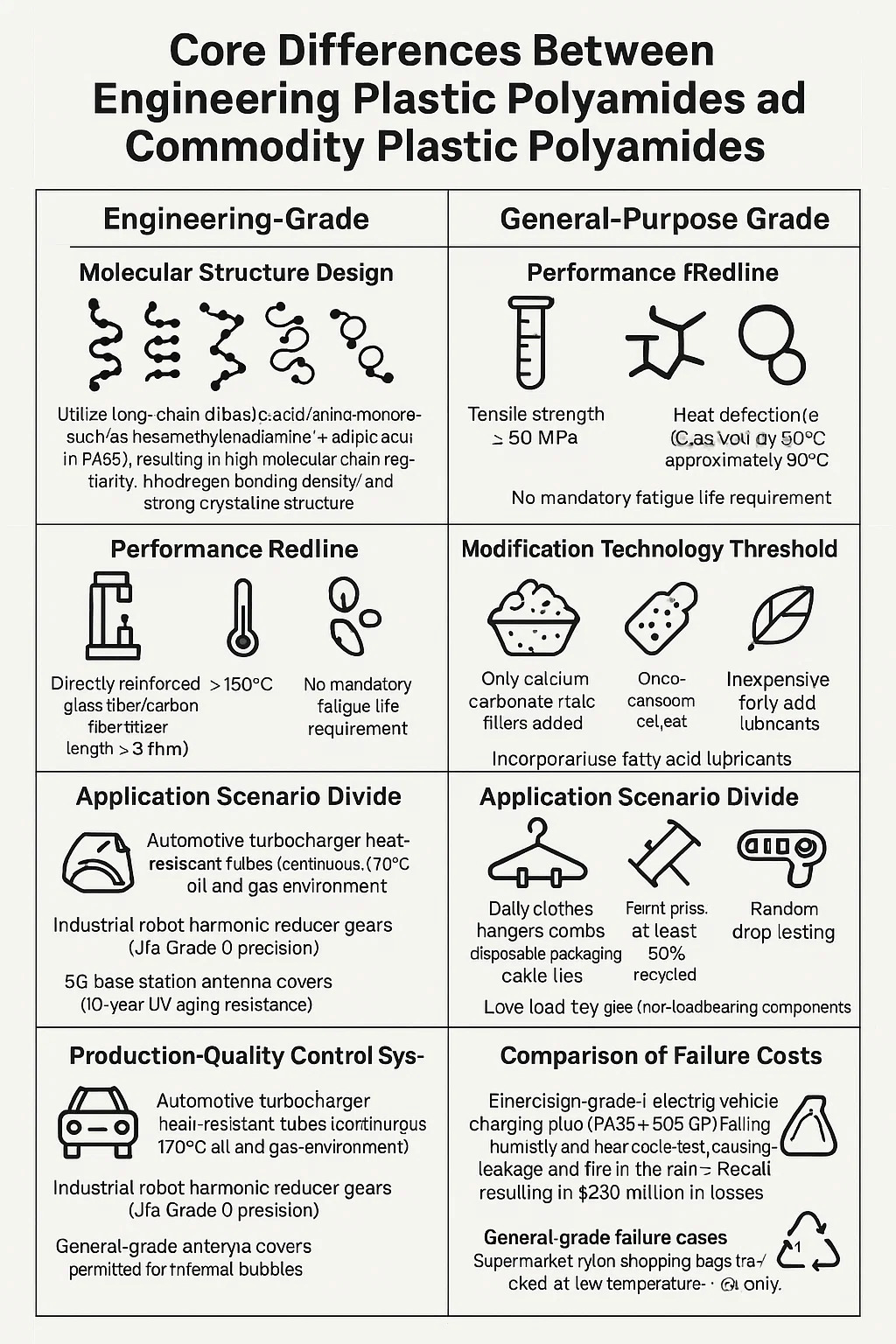 Ydinerot välillä Suunnittelu muovipolyamidit ja hyödyke muoviset polyamidit